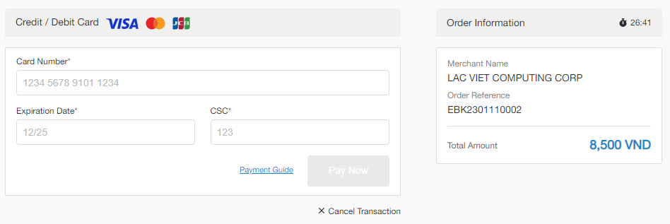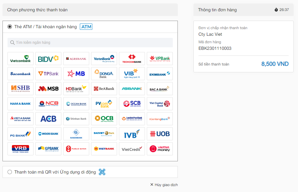 Lúc này sẽ chuyển sang màn hình thanh toán trực tuyến để bạn điền thông tin thanh toán.