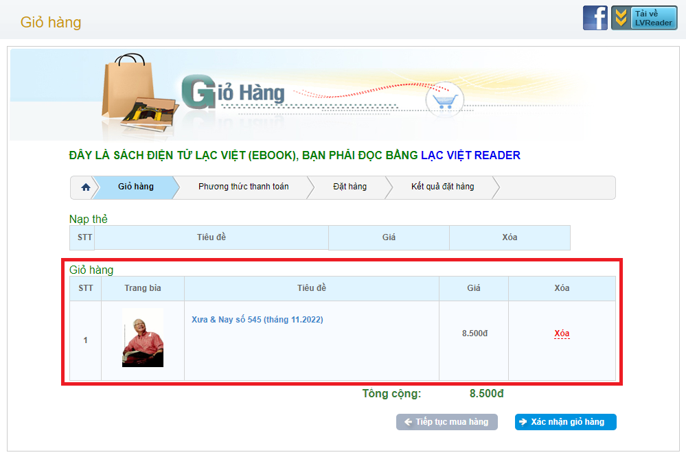 Để tải tài liệu vừa mua được về máy tính, bạn sử dụng công cụ Lac Viet Reader của Lạc Việt.