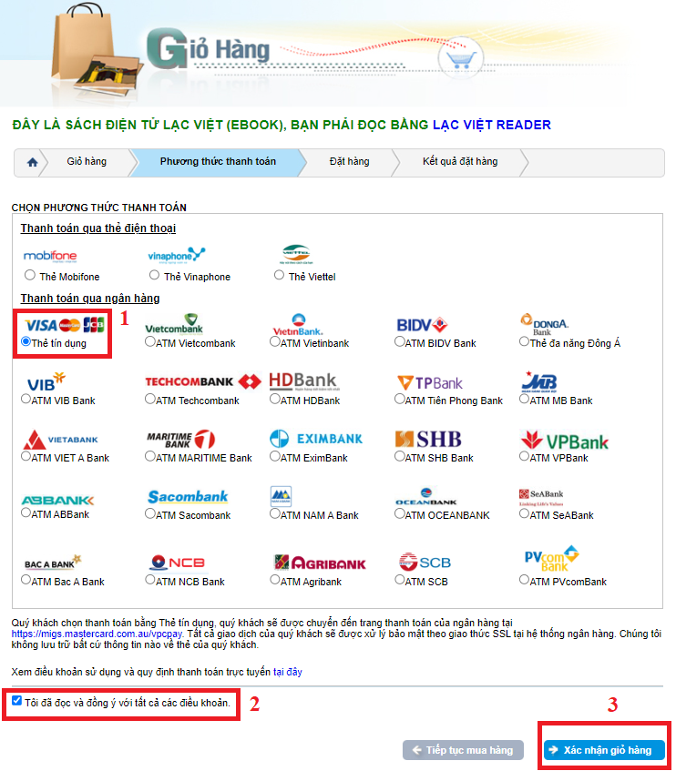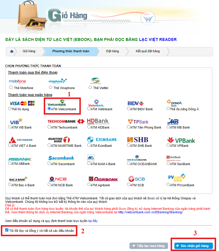 2. Chọn hình thức thanh toán là Thẻ ATM